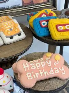 The retail boutique at Canine Cloud Nine also includes treats, food, toys, bakery goods, doggy birthday party supplies and gifts. Buckle Down custom collars and leashes are available as well as Artero grooming products.