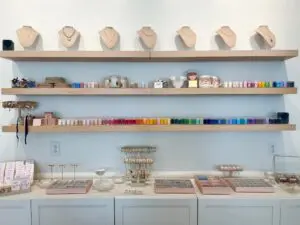 Owner Anna Fehribach, who opened Honey in September 2022, has always been passionate about jewelry and is eager to enhance the shopping experience for her customers. The new Carmel City Center space allows Honey to offer an expanded range of services, including the opportunity for customers to make their own jewelry at the newly designed bead and charm bar. This interactive feature includes a variety of materials such as glass beads, gold-filled and sterling silver metal beads, fancy glass beads, freshwater pearls, and gemstones.