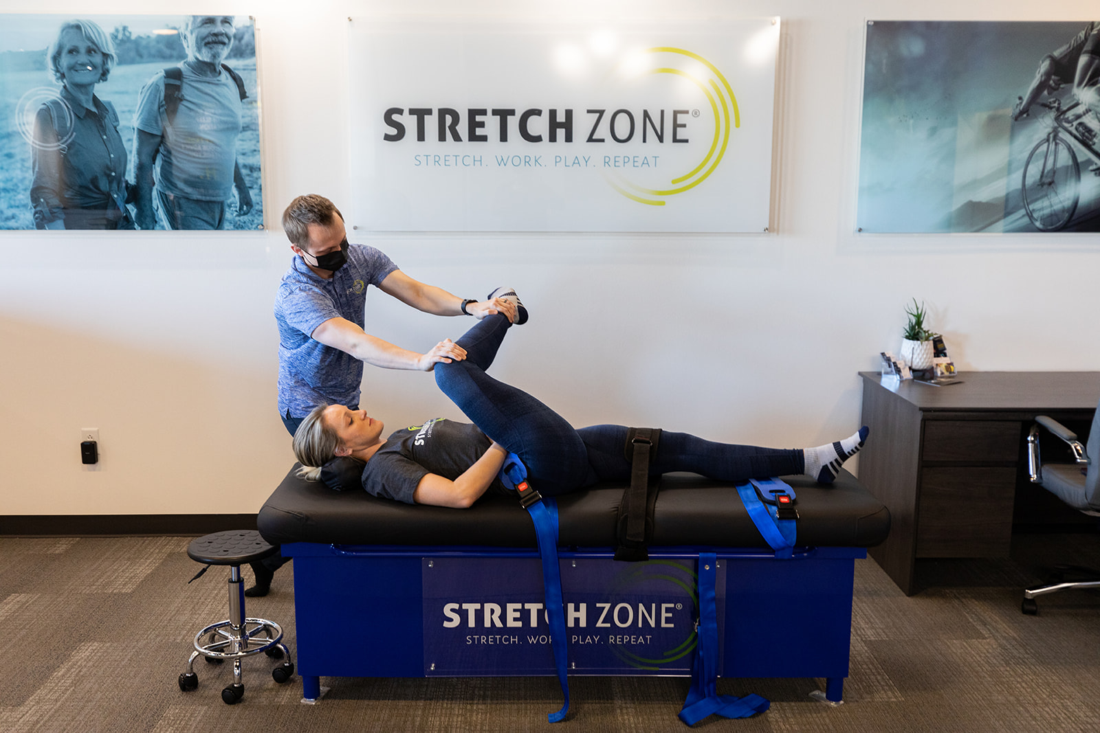 Utilizing their patented equipment, Stretch Zone practitioners follow specific methods and protocols to properly position, stabilize, isolate, and manipulate muscles using powerful principles of neuromuscular behavior. While traditional stretching methods attempt to make you more “flexible,” Stretch Zone works to adjust the stretch reflex. This way, the Stretch Zone Method® gradually increases your active range of motion.