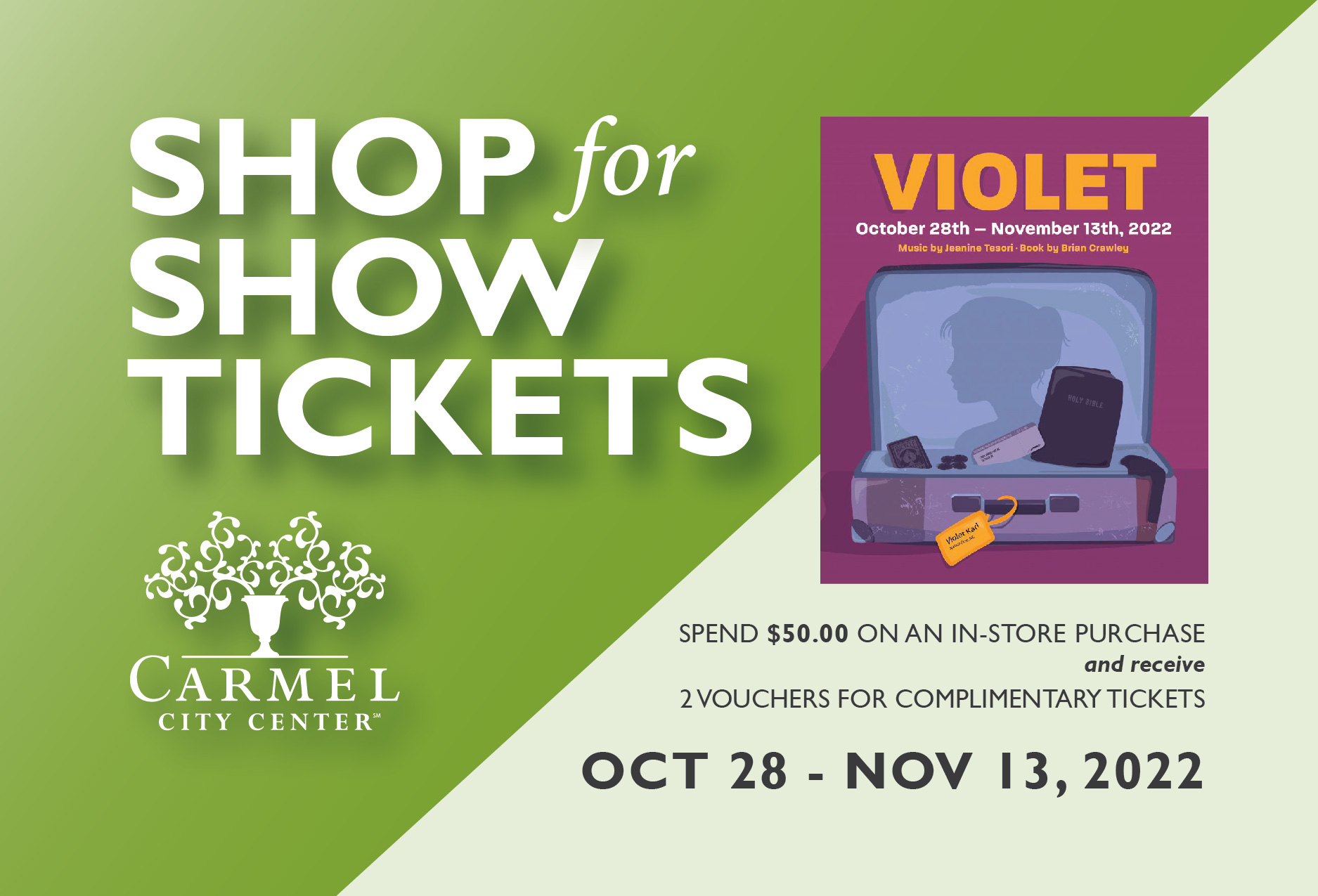 Shop and earn free tickets to see Actor’s Theatre of Indiana’s Violet October 28 – November 13, 2022 at the Studio Theater.