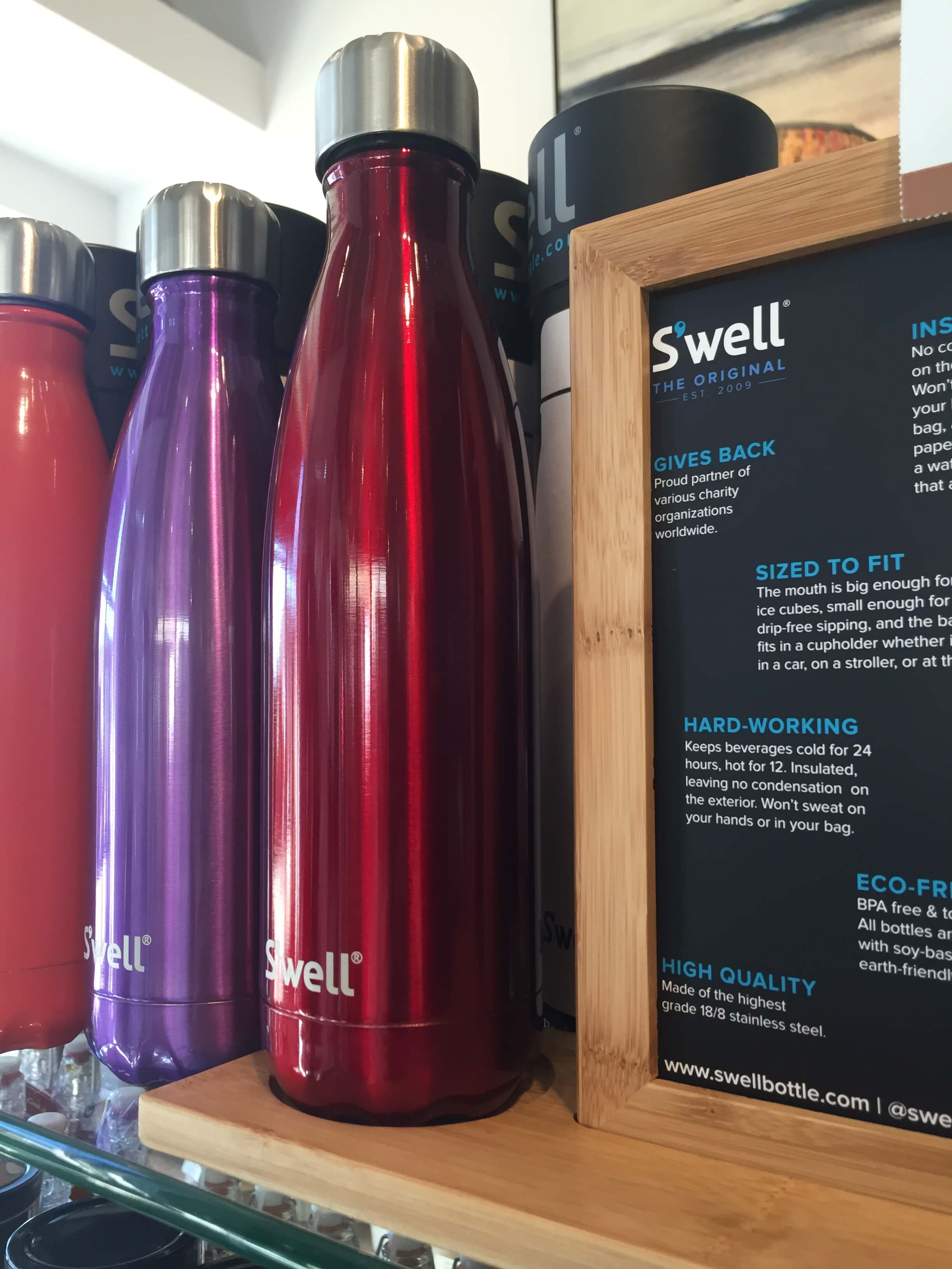 Stay hydrated with an insulated S’well Bottle from Addendum. BPA and toxin-free, made of the highest grade stainless steel. Available in a variety of color options. 17oz – $35, 25oz – $45