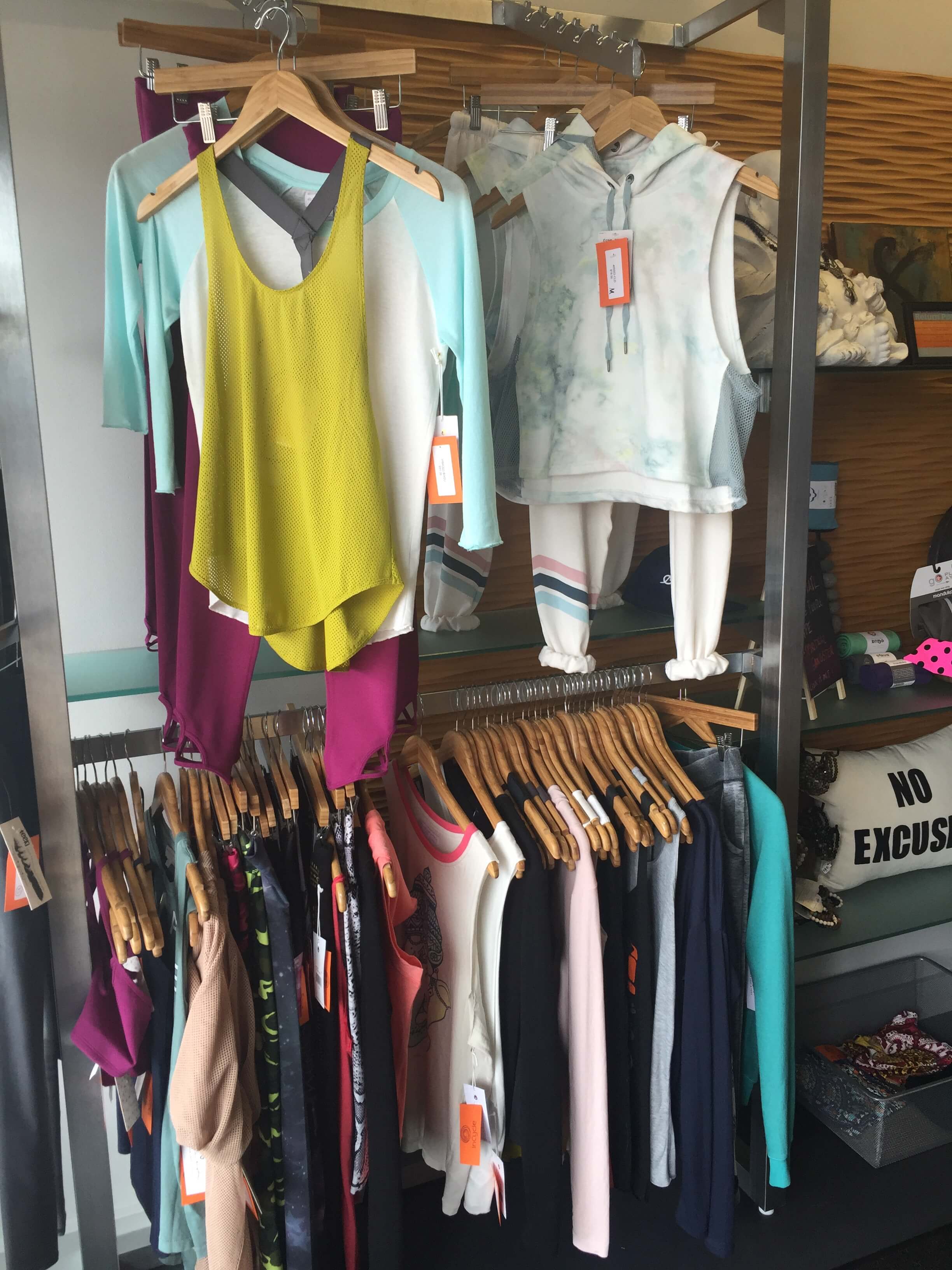 Look good while you sweat! Choose from a variety of workout tops and leggings at InCycle and The Yoga Studio. Tops range in price from $25-$60 and leggings run from $60-$100.