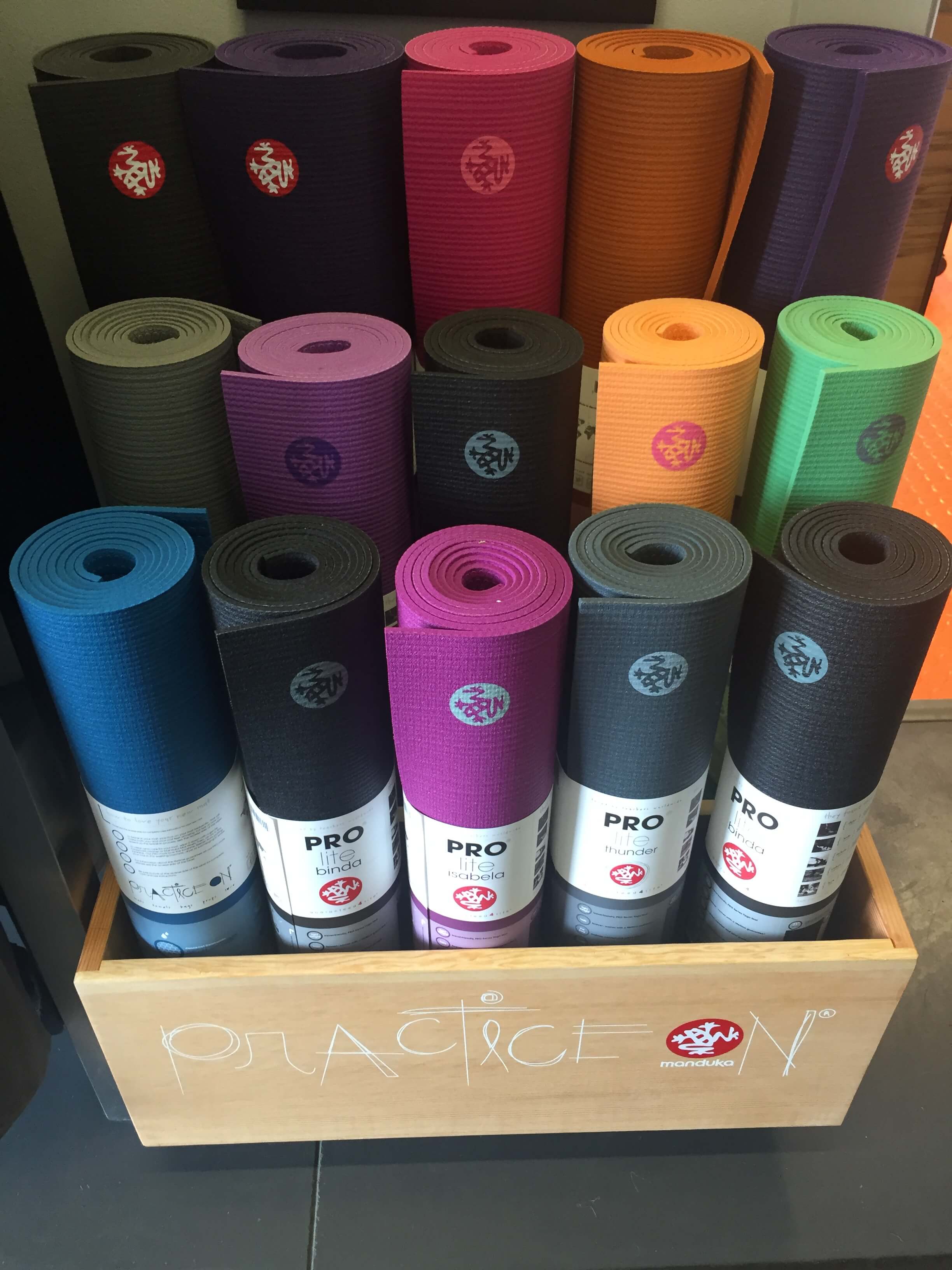 Yoga mats at The Yoga Studio are available in a variety of colors and two size options. Small mat – $80, large mat – $108.