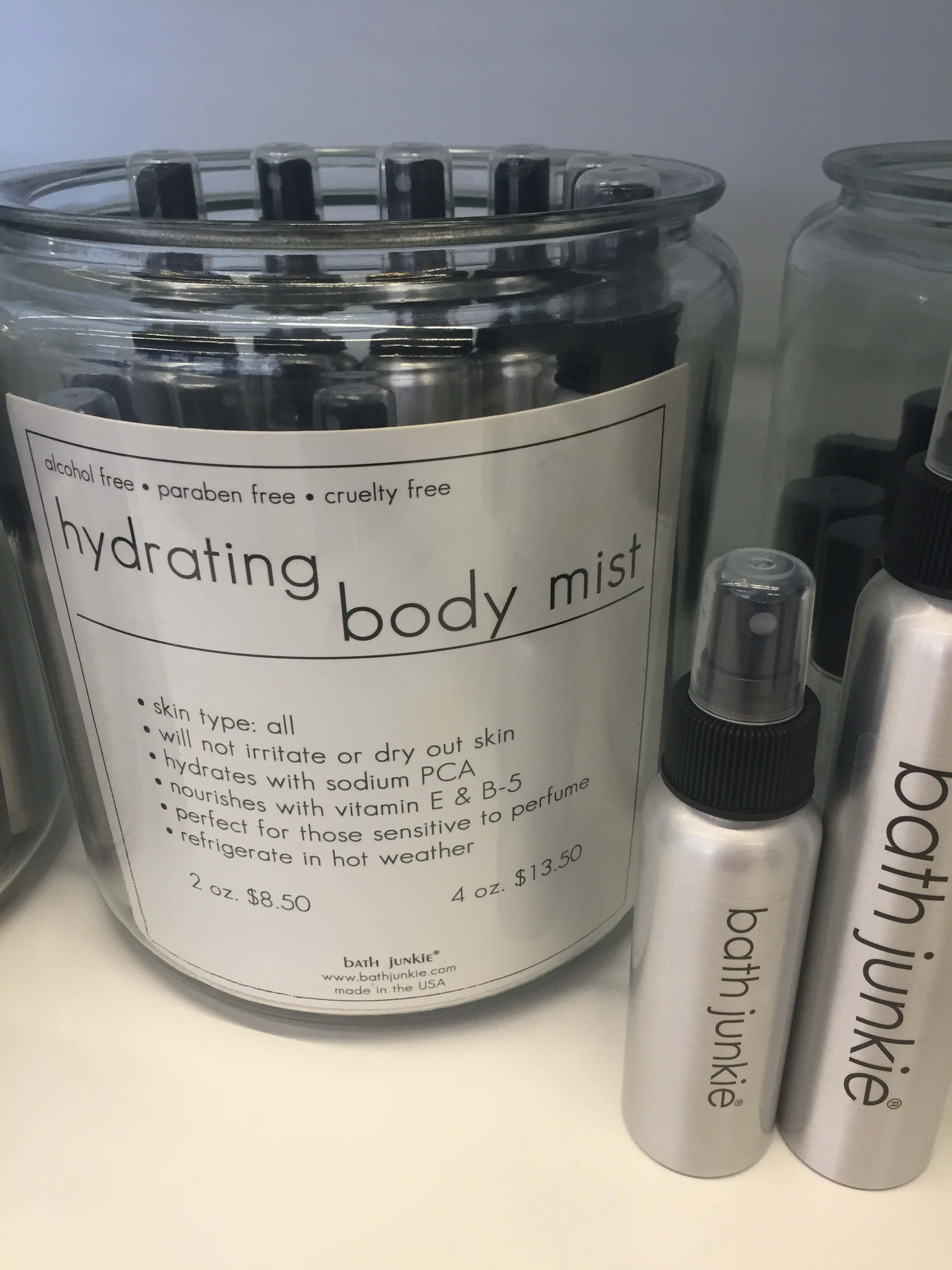 Keep a Hydrating Body Mist from Bath Junkie in your gym bag so you’re always fresh and ready for the next activity. 2oz – $8.50. 4oz – $13.50. Choose from over 100 fragrance options for the perfect, fresh scent.