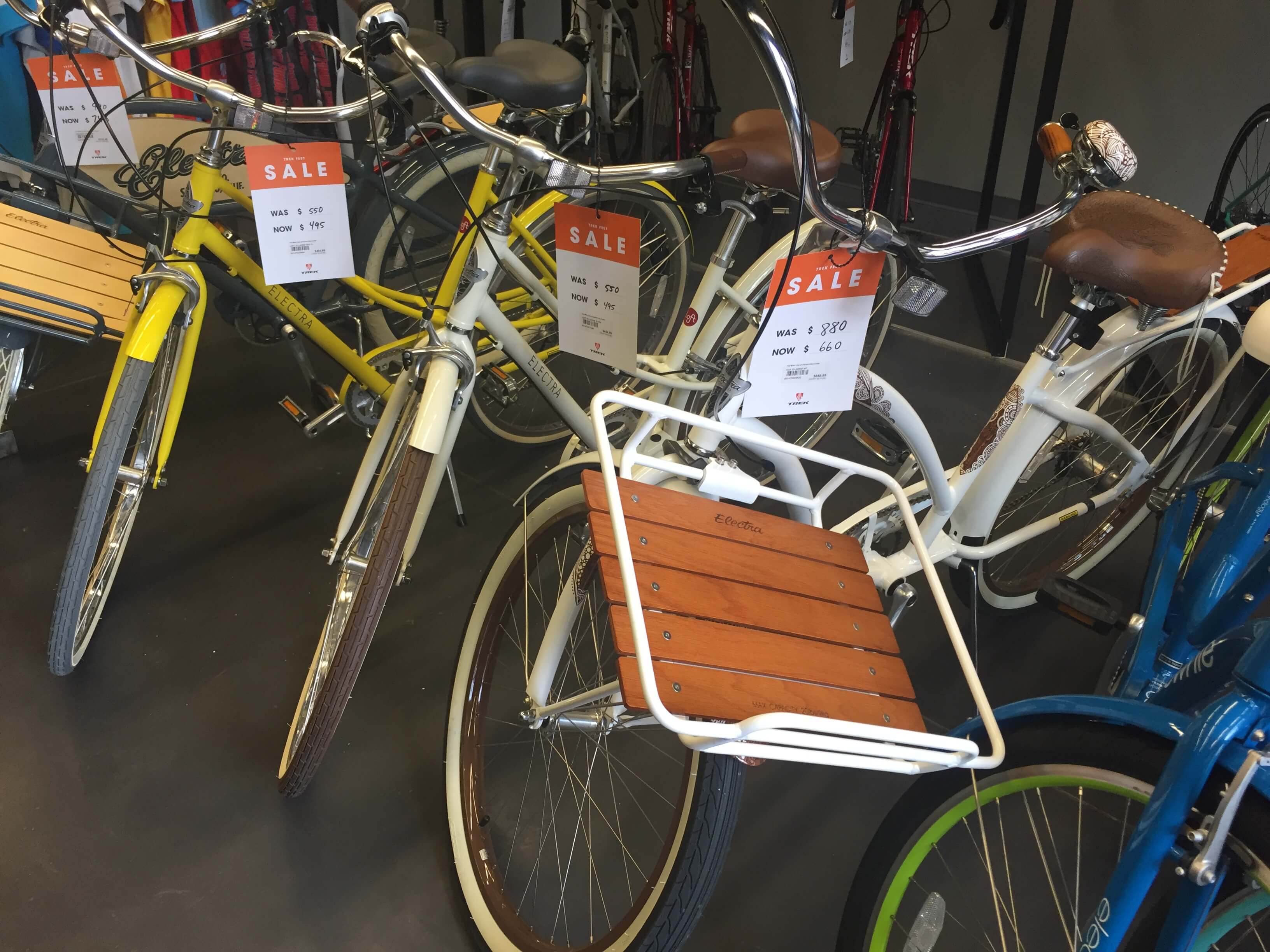 Cruise around town in a Trek Electra Bike available in a variety of options at the Bike Line.