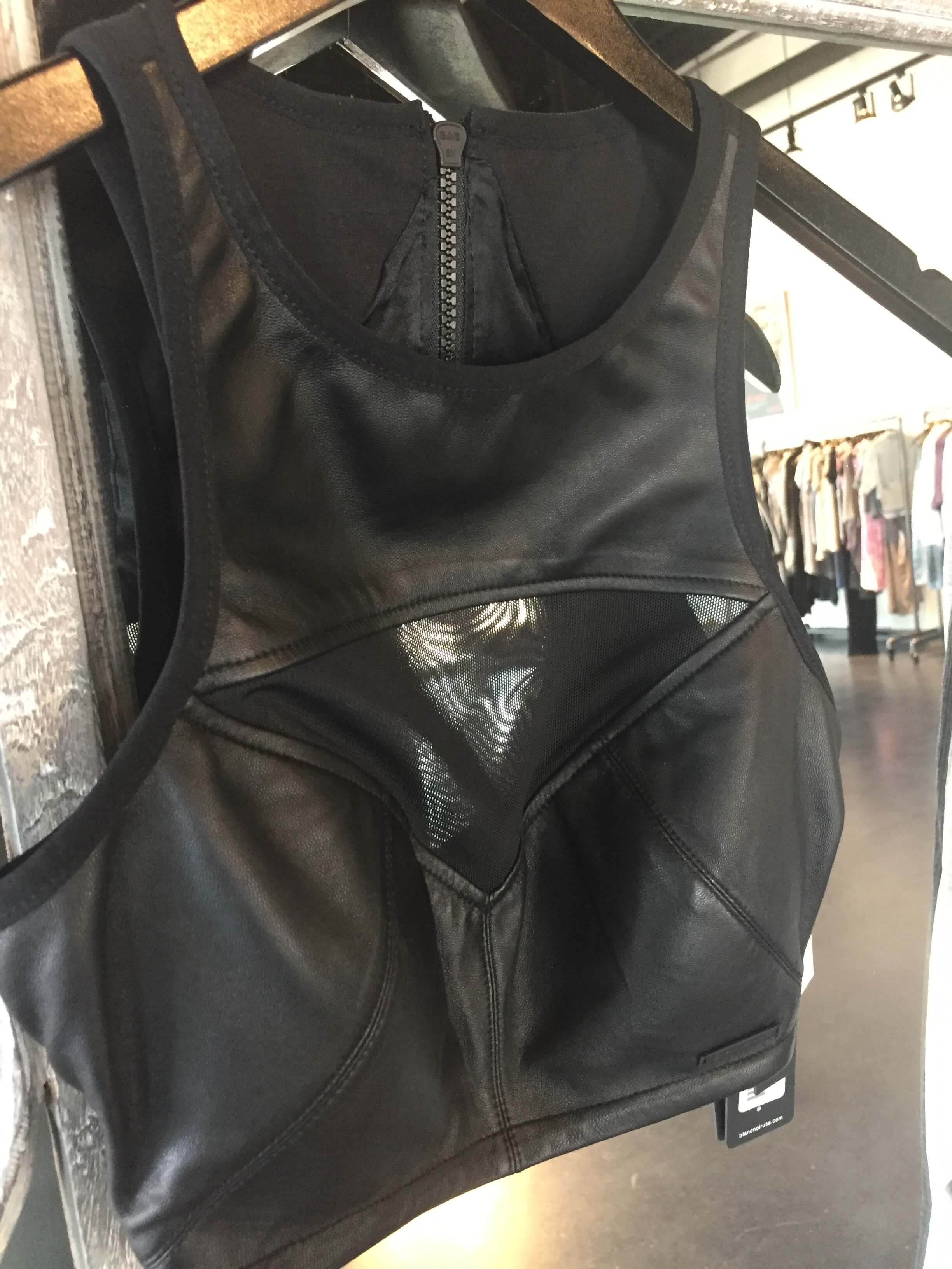 Blanc Noir Leather Bra Top is perfect for a run and layering under your jacket – available at beauty+grace. $128